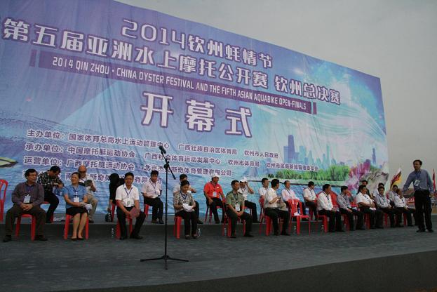 为期三天的2014亚洲水上摩托公开赛·钦州总决赛31日在广西钦州拉开序幕,来自中国、马来西亚、新加坡、中华台北、泰国、美国、澳大利亚等国家和地区的37支赛队、80多艘赛艇、120多名运动员参赛。